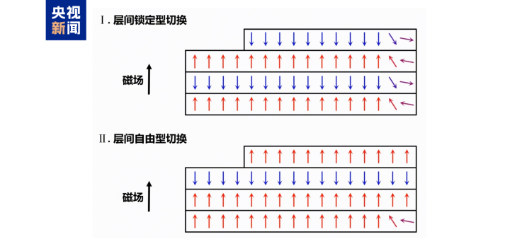 为什么能实现这种“集体舞”?研究团队从经典理论中找到灵感并加以完善。他们发现,关键在于材料内部两种“力”的较量:一种是让上下层磁矩反着排的“耦合作用”,另一种是让磁矩保持固定方向的“各向异性”。当耦合作用足够强,一层翻转就会牵动所有层一起转,形成整体舞动;否则就会各转各的。